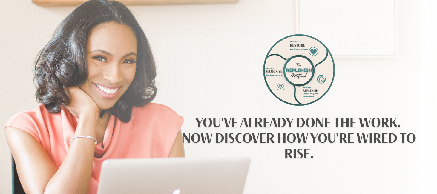 You don't need another starting point. You need to know what's next. Discover your Replenishment Code and the phase of The REPLENISH Method™ that matches where you actually are — not where you used to be.